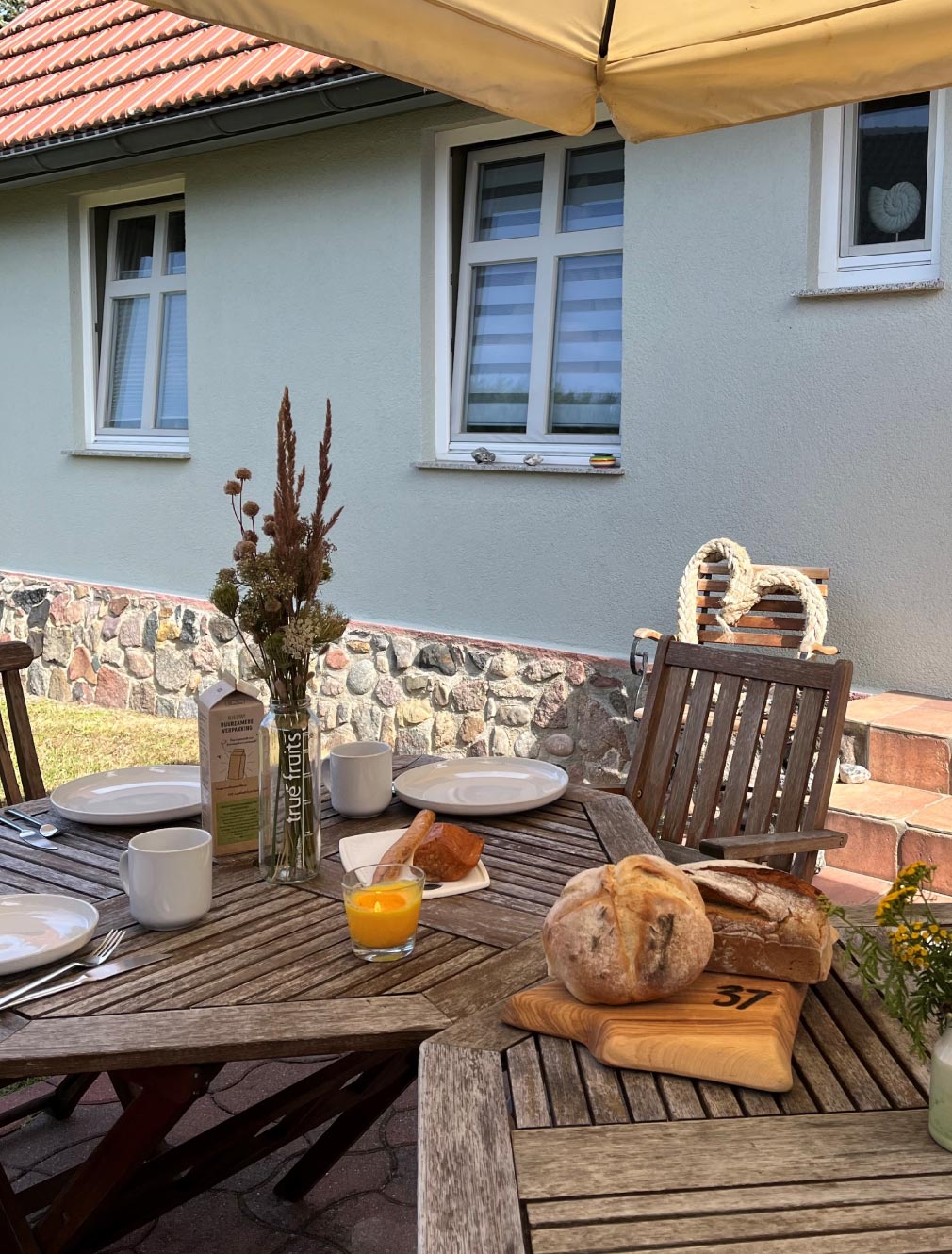 Im Herbst diesen Jahres werden wir mit der letzten Badsanierung und der Neugestaltung der Außenanlagen die Erneuerung abschließen. Im Erdgeschoss befindet sich die größere ehemalige Fischerwohnung „Kranichwiese“. Im Obergeschoss sind die beiden kleineren gemütlichen Wohnungen „Jasmund“ und „Bodden“. Neben originalgetreuen Holzdecken und Dielen werden Sie mit Elementen der alten Scheune und der ehemaligen Dorfstraße viele interessante Details entdecken. Freuen Sie sich nach einem langen Tag mit vielen Eindrücken und Erlebnissen auf eine heimelige Atomsphäre am Kamin oder entspannen auf der Terrasse und im Garten.