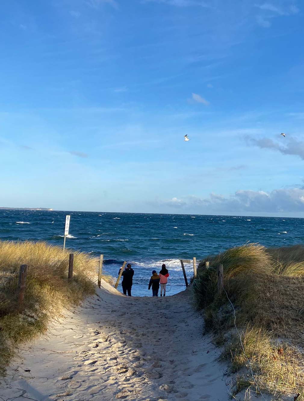 Gleich neben dem Haus befindet sich der alte Hafen des Dorfes, der mit einem kleinen Sandstrand und einem Kinderspielplatz in der Nähe als ruhiger Badeort einlädt. Der Bodden ist ideal zum Surfen. Am benachbarten Martinshafen befindet sich ein Kitespot, der sich perfekt für Anfänger eignet, da man weit ins Wasser laufen, noch sicher stehen und den Kite gut kontrollieren kann. Die Kiteschule Rügen Kite hat gleich nebenan ihr Zuhause.